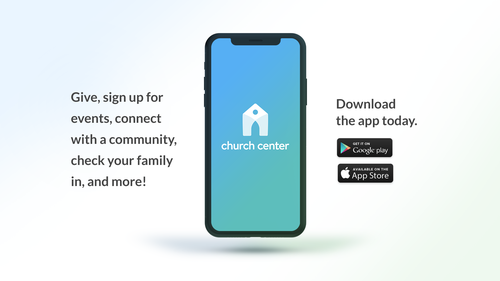 With so many different means of communication in today's world, the Church Center app is an online tool we can use to keeping you informed, a place to see events and register, give your tithe, and connect with Community Groups.